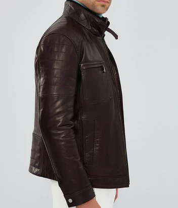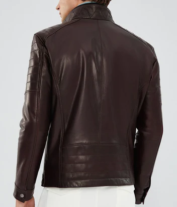 The hardware of Claret Quilted Leather Biker Jacket for Men’s is ultra shiny silver; the front zipper perfectly symmetrical. Its adjustable waist buckles and snap-tab collar make the fit bespoke to you, slipping over your outer layers with ease. The worldly traveler will especially love the sheer, soft lining and functional passports or smartphone pocket. Wear in central park or meeting friends at a lounge in London, this piece is perfection and comfort. Finally, you can enhance the exposure with an outfit that spells modern luxury and risk-taking.