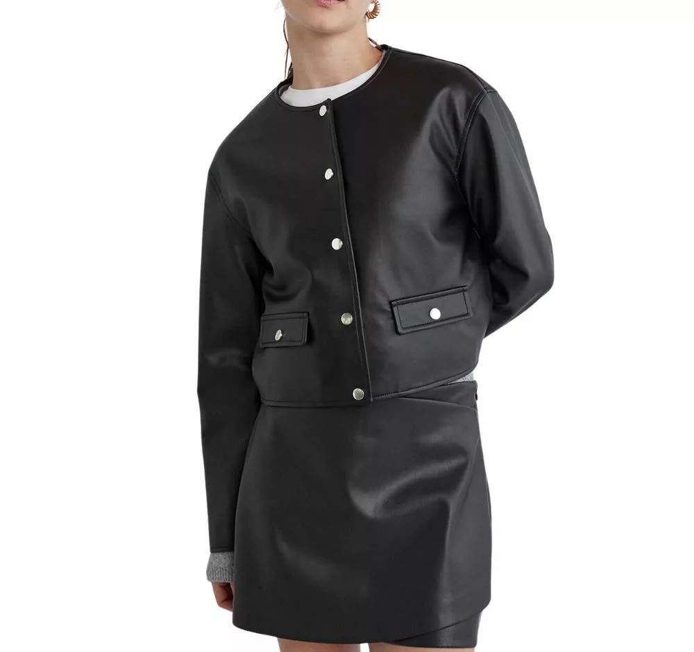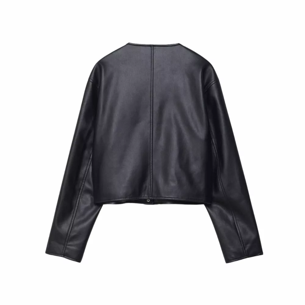 Be the first to review “Women’s Collarless Black Crop Leather Jacket” Cancel reply