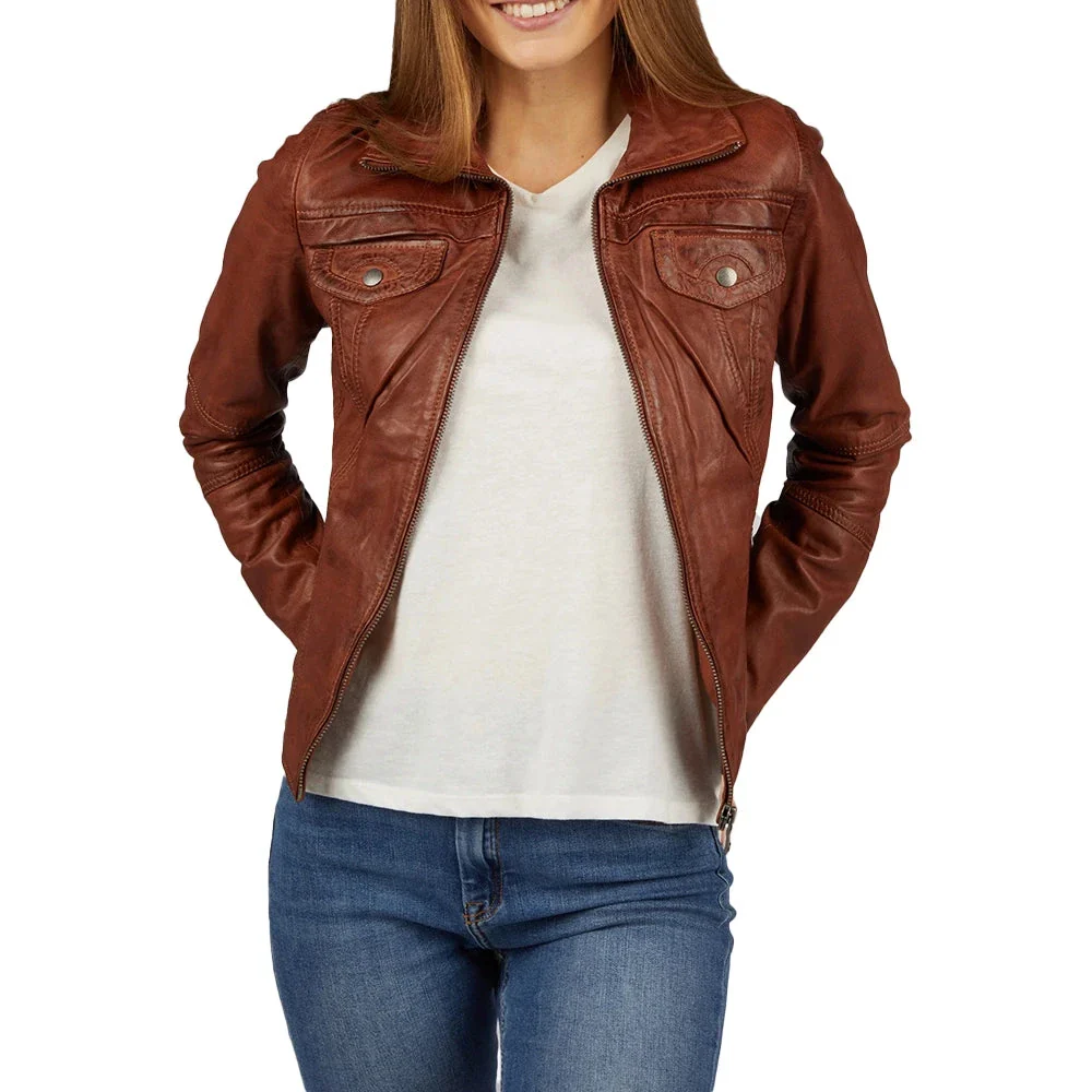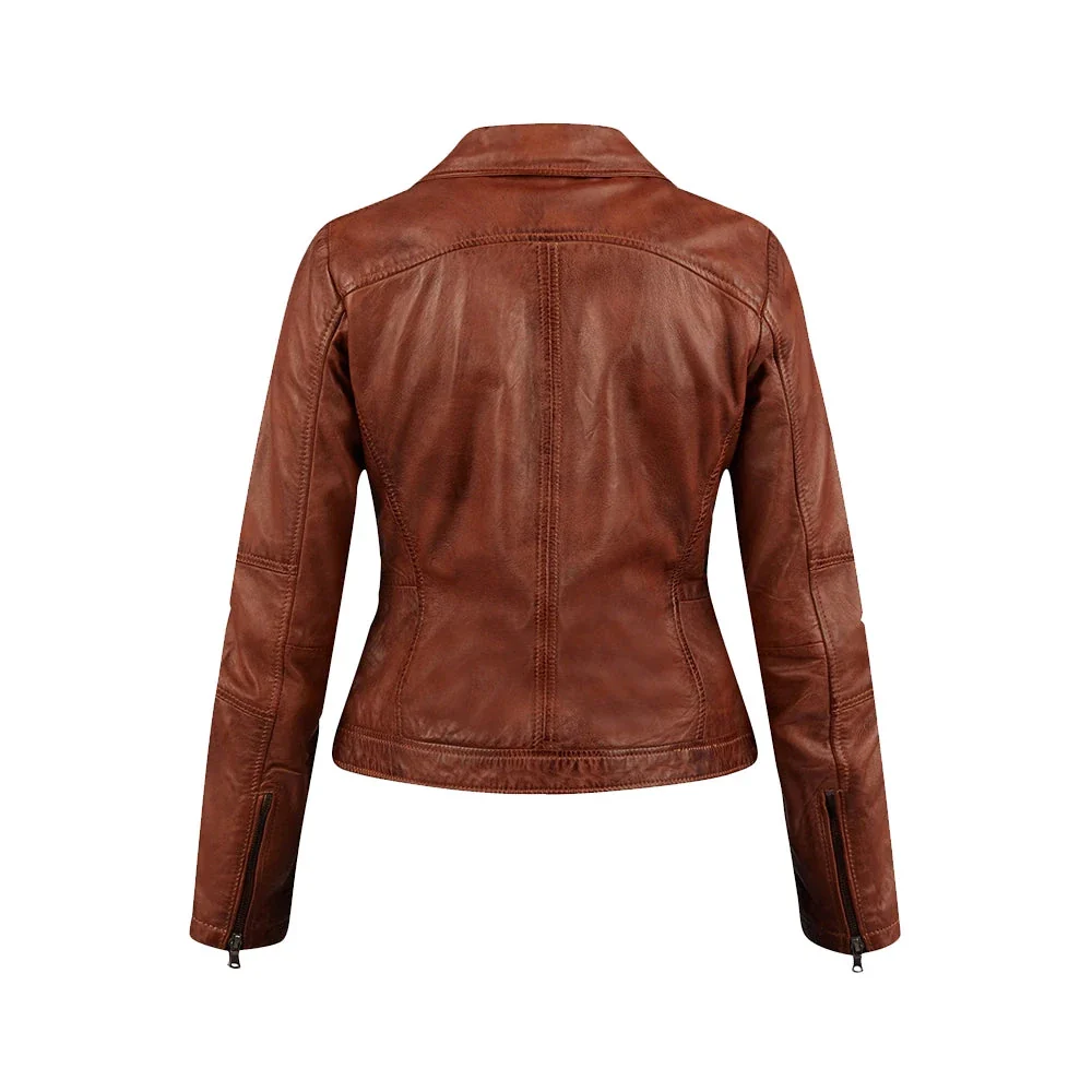 Slim Fit Brown Genuine Leather Jacket For Women’s