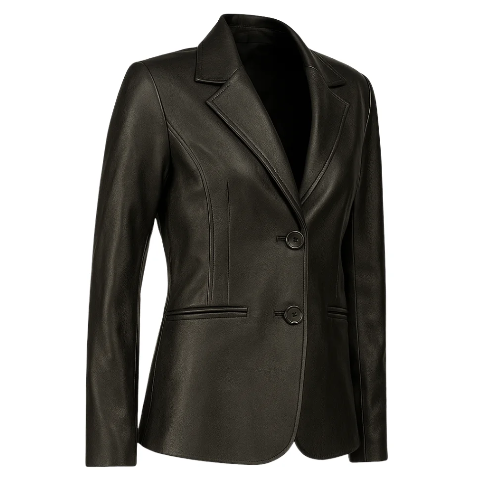 Two Buttoned Black Leather Blazer For Women’s