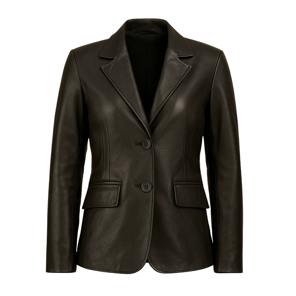 Women’s Two Buttoned Black Leather Blazer